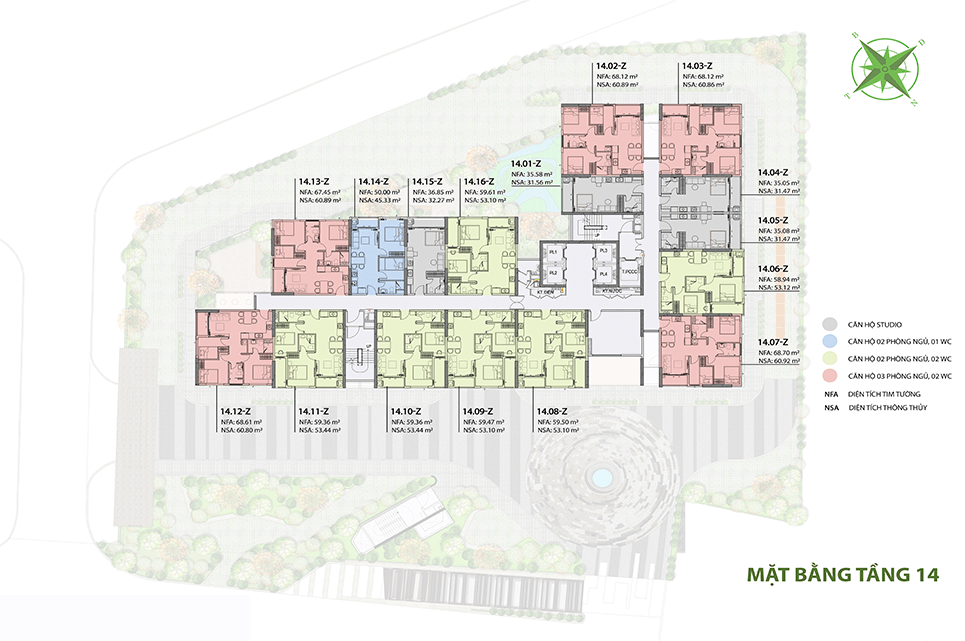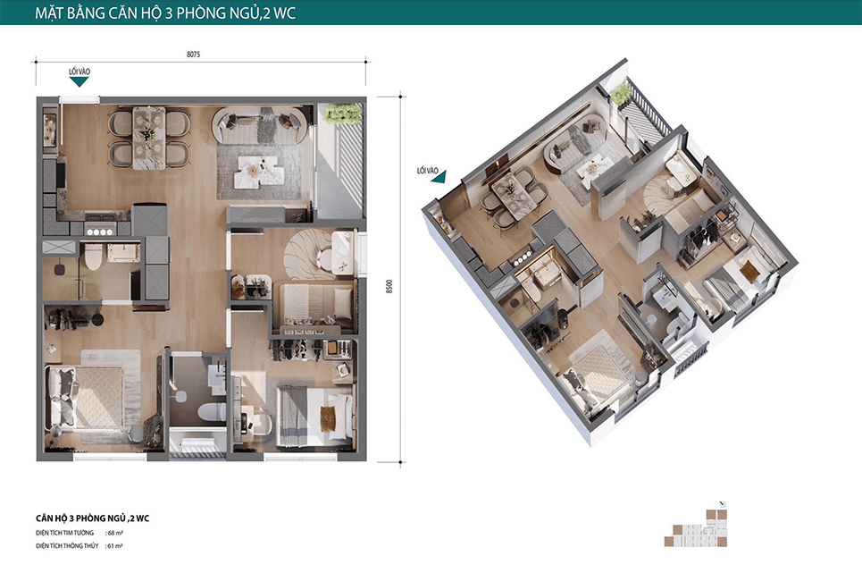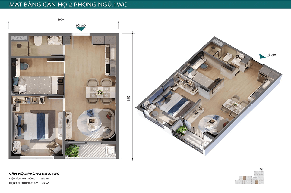 - Căn hộ cao cấp: Từ Studio đến 3 phòng ngủ, phù hợp với nhu cầu an cư của các gia đình trẻ và những nhà đầu tư.