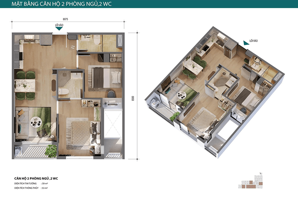 Căn hộ 2PN-2WC được kiến tạo để nuôi dưỡng hạnh phúc gia đình, nơi sự riêng tư được trân trọng và những khoảnh khắc gắn kết được vun đắp mỗi ngày. Phòng ngủ Master – Không gian tái tạo năng lượng cho ba mẹ sau một ngày dài.Phòng ngủ cho trẻ – Khơi mở sáng tạo giúp trẻ học tập, vui chơi và phát triển toàn diện.Phòng khách & bếp liền kề – Gắn kết yêu thương, lưu giữ những khoảnh khắc đáng nhớ của cả gia đình.SkyZen – Nơi bắt đầu những hành trình hạnh phúc.